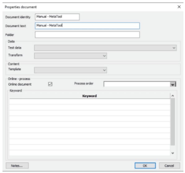 | Test process | Starts process test. See manual MetaWrite manual. |