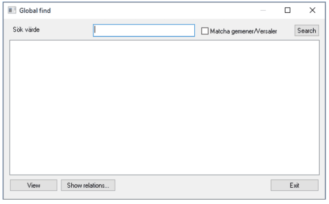 | Global find | Search the entire Metalogic for a matching string. See chapter Global find |
