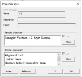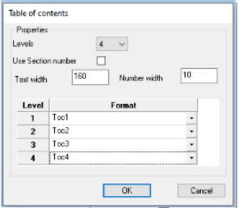 | Properties/Format | The style template that will be used for the level in the TOC. See below |