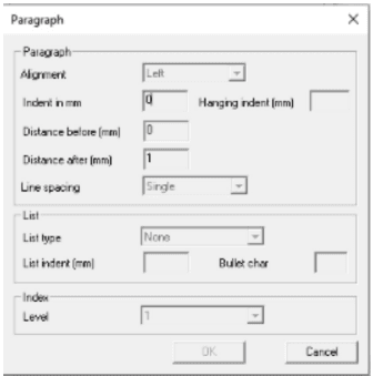 For Paragraph.. enter Index level 1, 2, 3.. depending of your choice.
