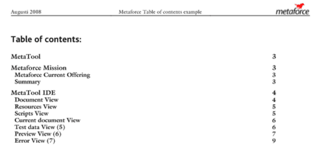 This chapter will describe the supported formatting commands used in Metaforce Process handling that can be used to control input and write protection in Word document.